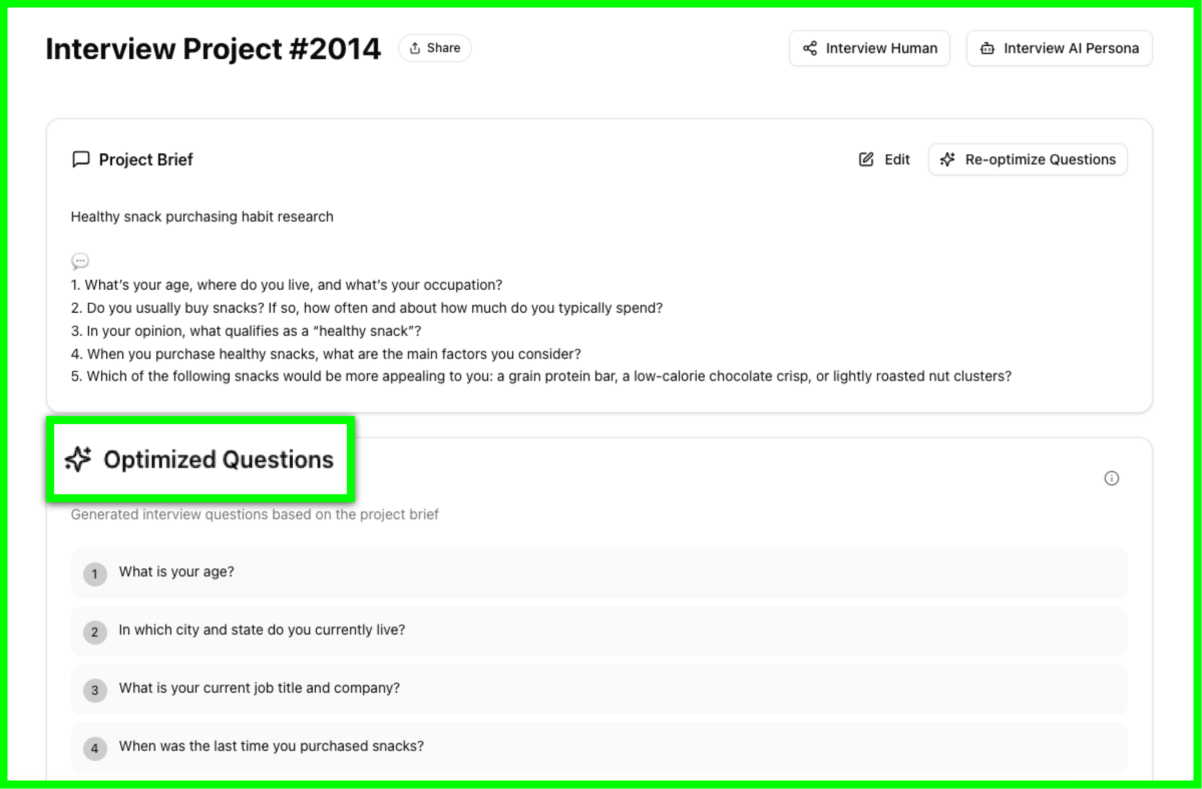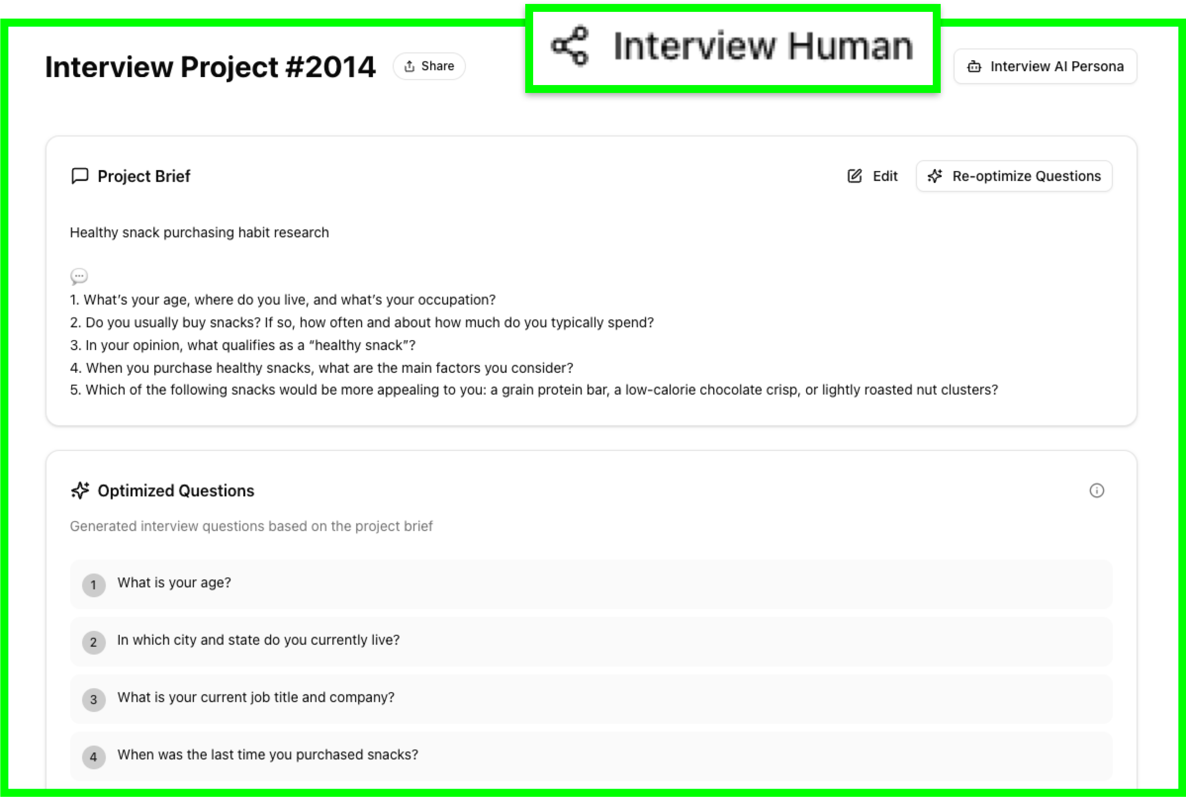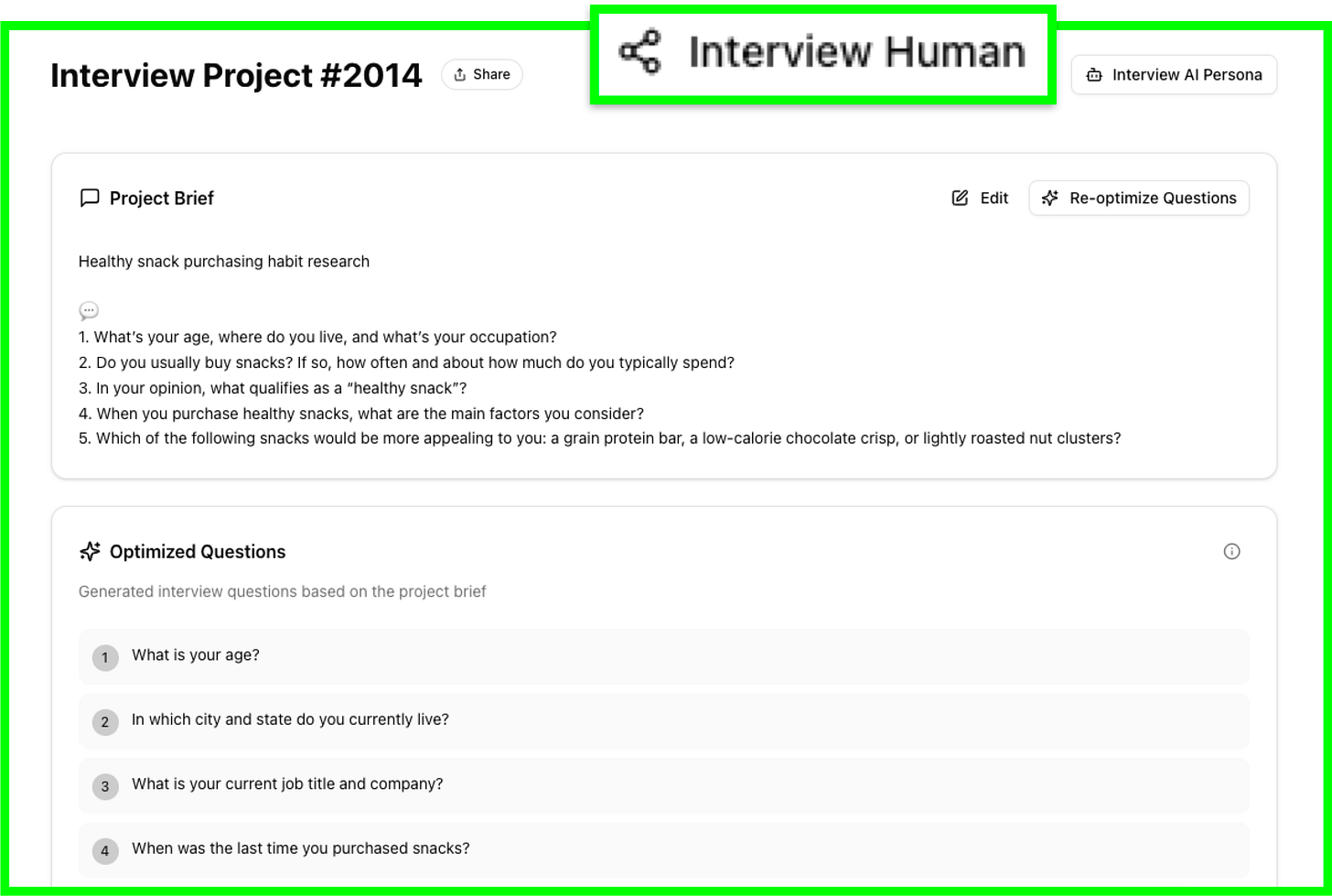 Used AI-Powered Interview Research (Let AI conduct professional interviews with real people and AI Personas. Generate insights automatically with our intelligent interviewer.) to obtain consumer insights