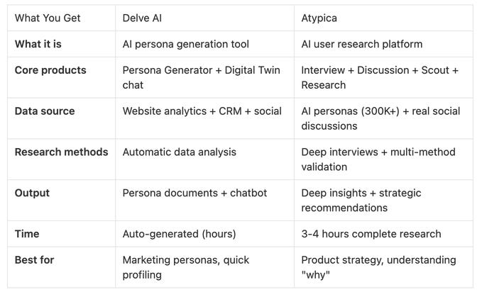 The difference: Delve AI creates marketing personas. Atypica informs product strategy.