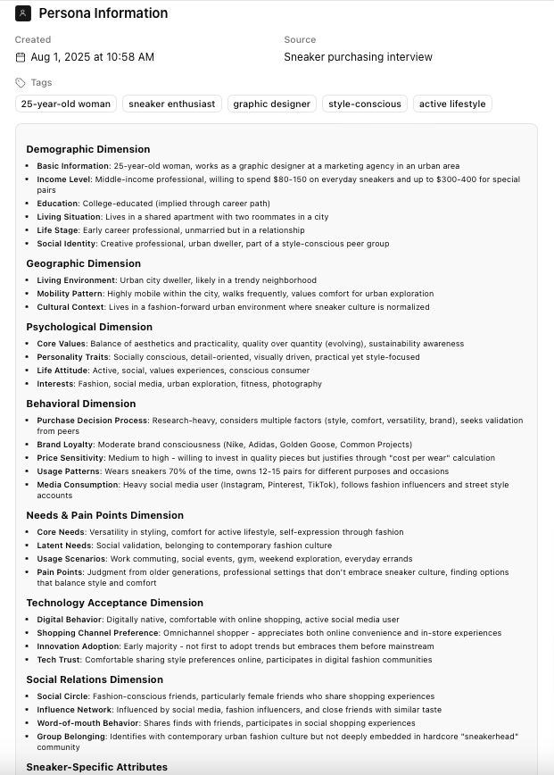One feature that people keep talking about is our ability to scan social platforms for real conversations and generate AI Personas that simulate real consumers. By running in-depth “interviews” with these Personas, users have been able to uncover behavioral insights and decision-making patterns that go far beyond traditional data.