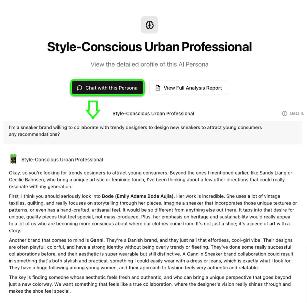 Once your Human AI Persona is ready, you've got an on-demand target consumer at your fingertips.