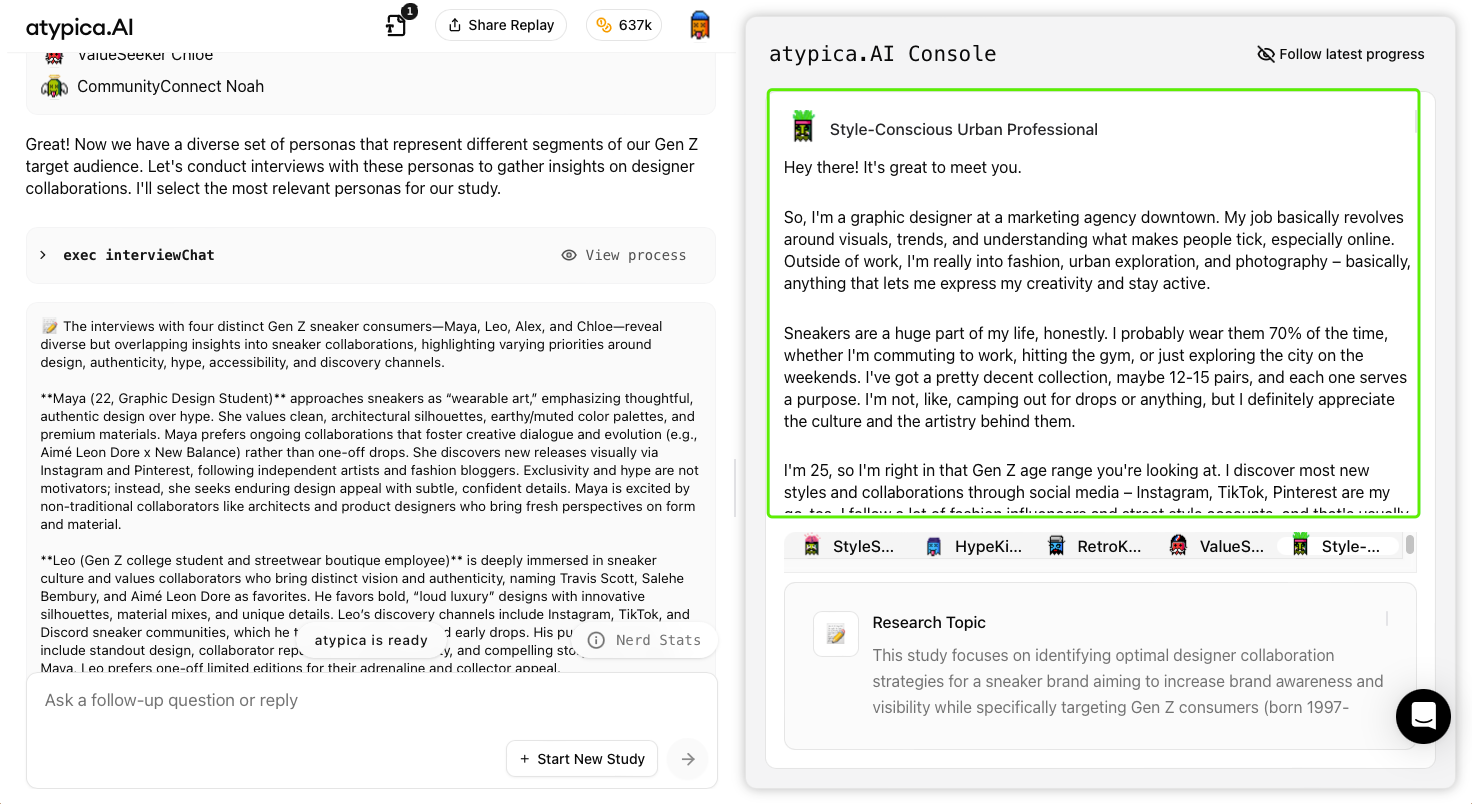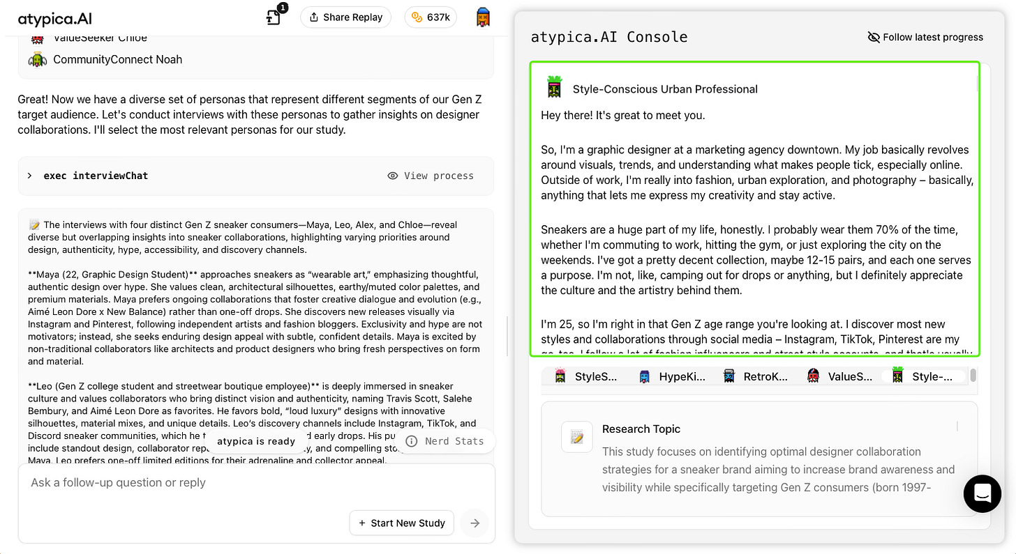 → Atypica analyzes, generates, and scores your proprietary Human AI Persona in about 60 seconds