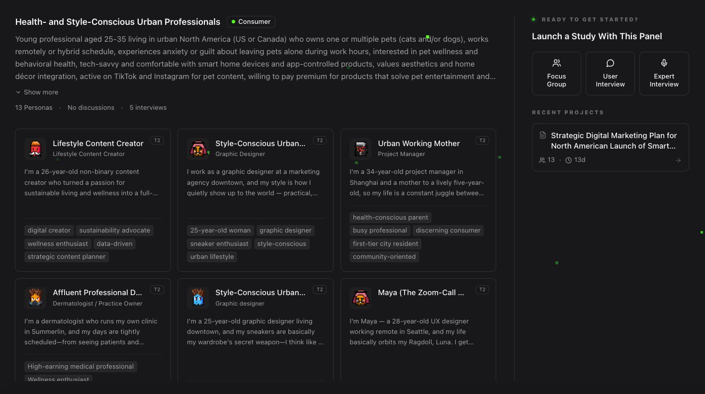 What we’ve learned: AI Personas are structurally suited for this because you can have simultaneous, in-depth conversations with dozens of distinct user profiles. You can probe. Follow up. Push harder. No respondent fatigue. No social desirability bias. No one softening their answer to seem polite.
