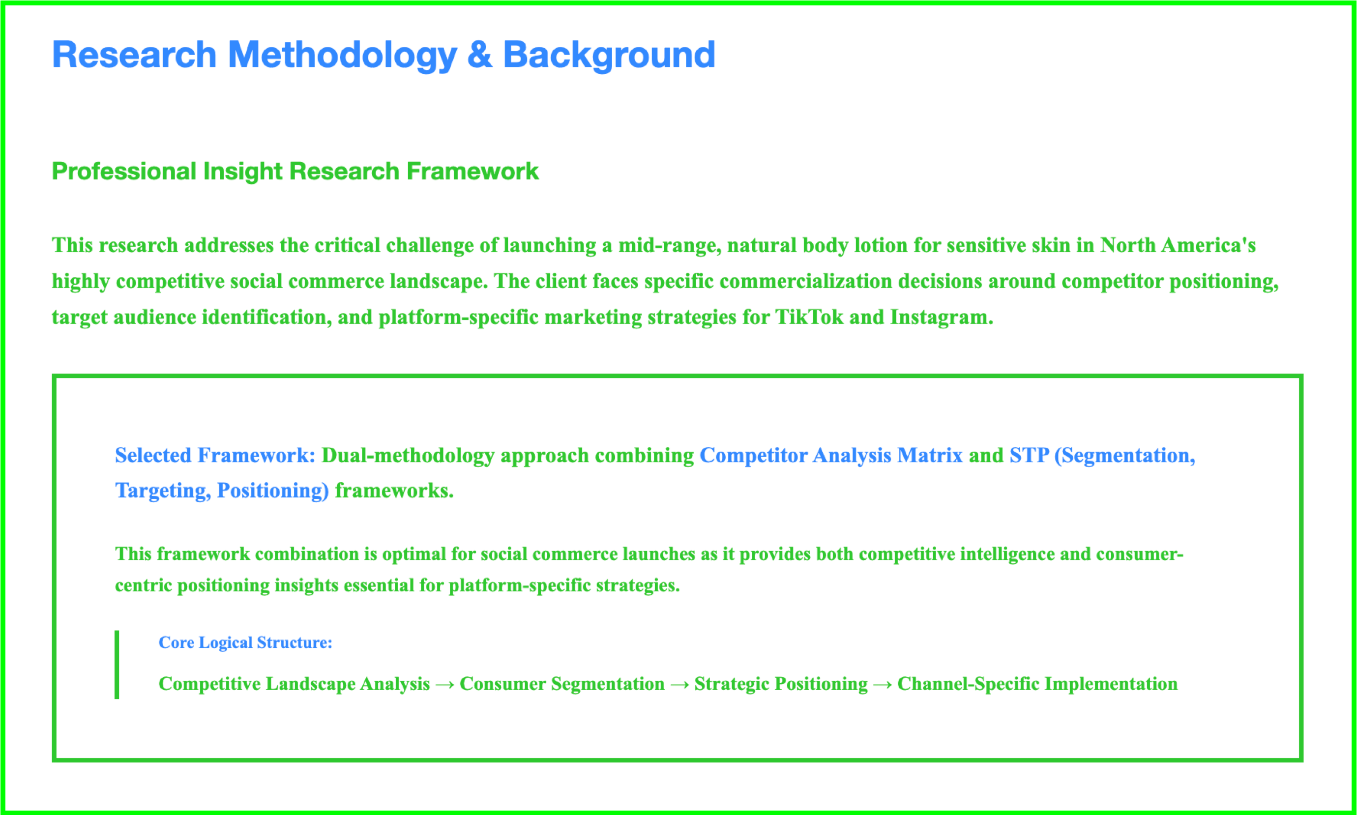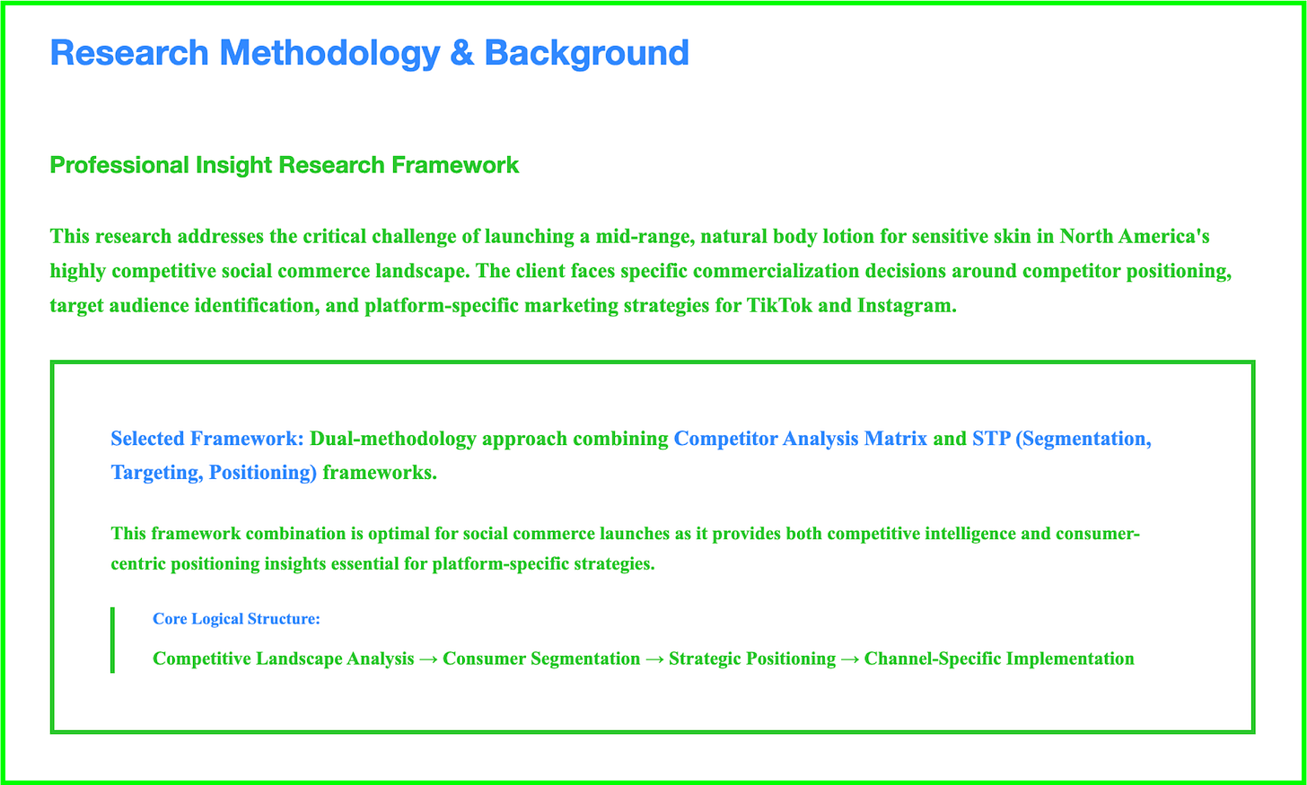 Despite years of experience running paid campaigns, Sophie had never faced such a fragmented landscape. Social commerce in North America was dominated by well-funded, trend-driven competitors. Her team lacked clarity on which brands to benchmark, which consumer segments to prioritize, and how to translate “natural” into a credible, differentiated message that would resonate with sensitive-skin users.